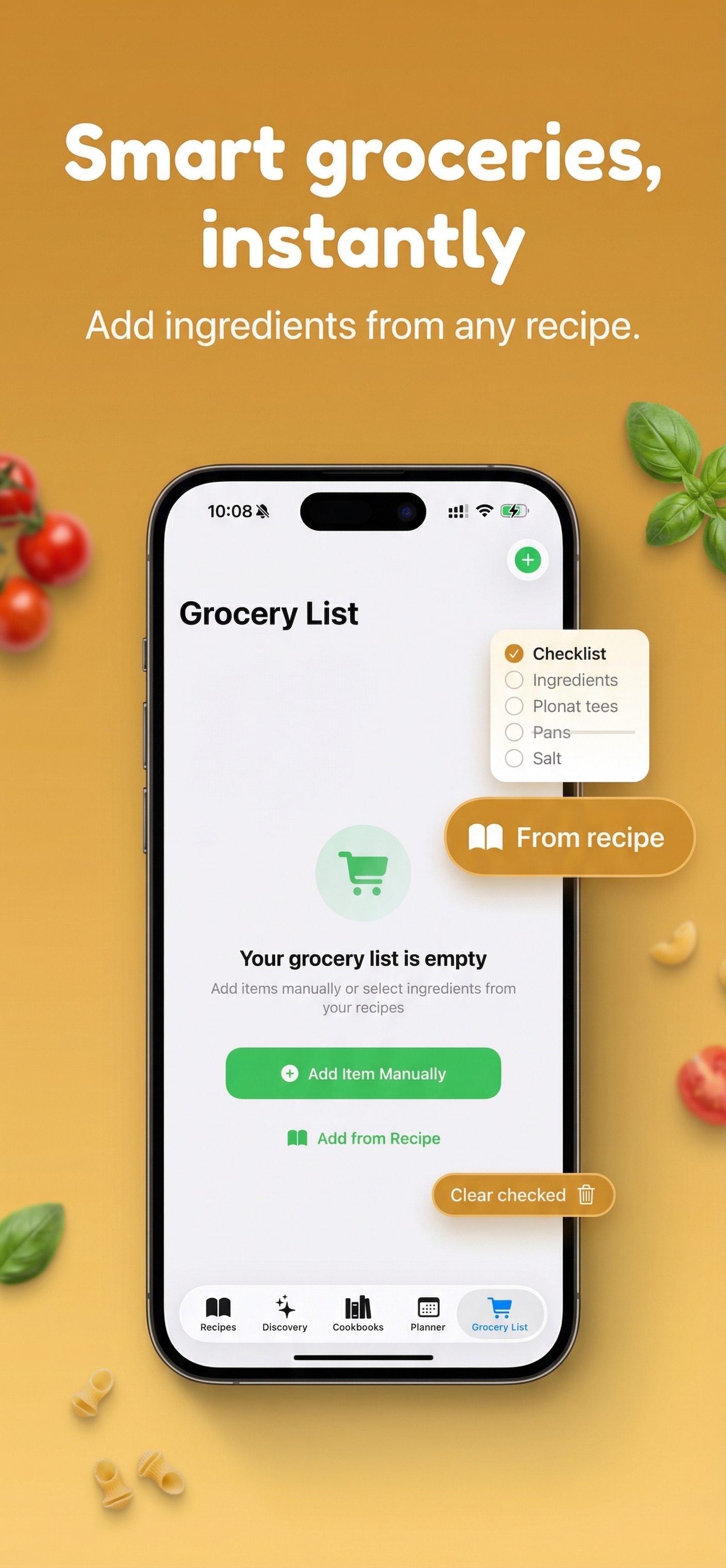 Import recipes from TikTok & Instagram with AI. Plan meals, build grocery lists, and create beautiful cookbooks — all in one app.